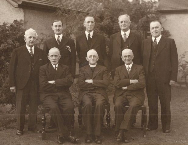 Owen Roberts, J.W.Lloyd, Bob Roberts, Fred Pritchard and Tudor Williams (back row) .Front row : J.R.Williams, Rev R.R. Thomas and Shem Price.