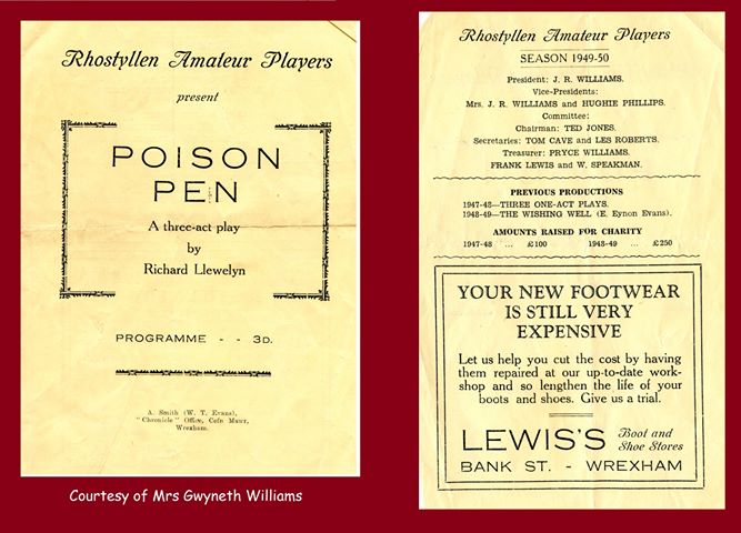 In the 1949 play : 3rd from left back row is Mrs Hughie Phillips (buses), Mervyn Roberts and Cliff Cave playing the vicar on right. Seated front row is George Davies next to Brenda Howell and Joan Williams far right